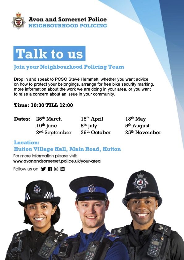 c/o 12 Hutton Hill, Hutton, BS24 9SY     📧 Clerk@huttonsomerset.org.uk     📞 07415 925 756